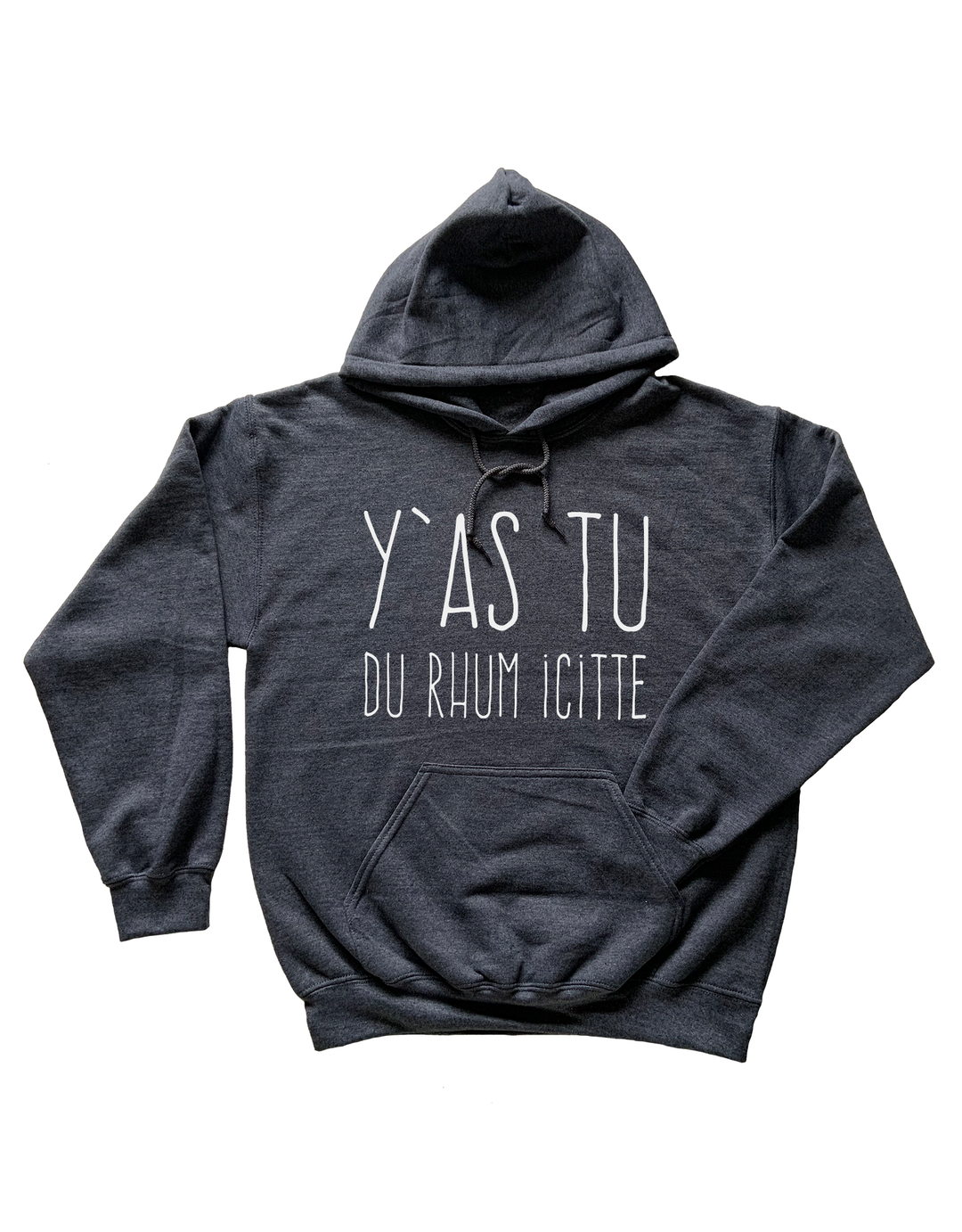 Chandail Coton Ouaté à Capuche Y'as Tu Du Rhum Icitte