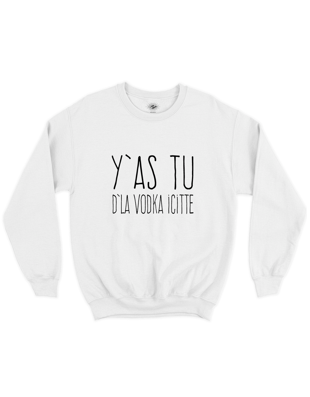 Chandail Coton Ouaté Y'as Tu D'La Vodka Icitte!